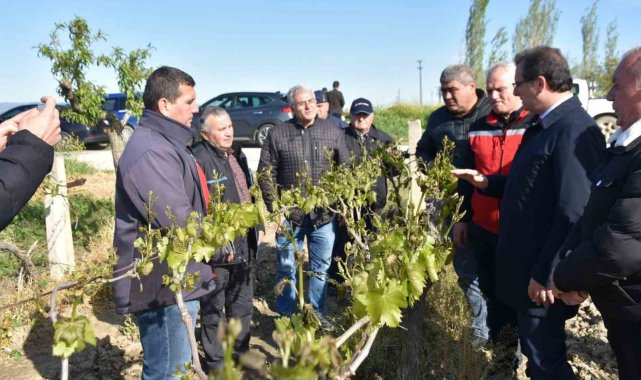 Kaymakam Güldoğan, don afeti yaşayan bağları yerinde inceledi