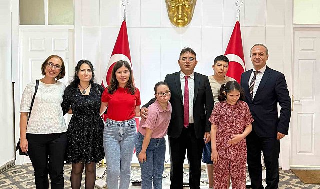 Muğla'nın Marmaris ilçesinde, Engelliler Haftası etkinlikleri dahilinde özel eğitim alan öğrenciler, Marmaris Kaymakamı Nurullah Kaya'yı makamında ziyaret etti.