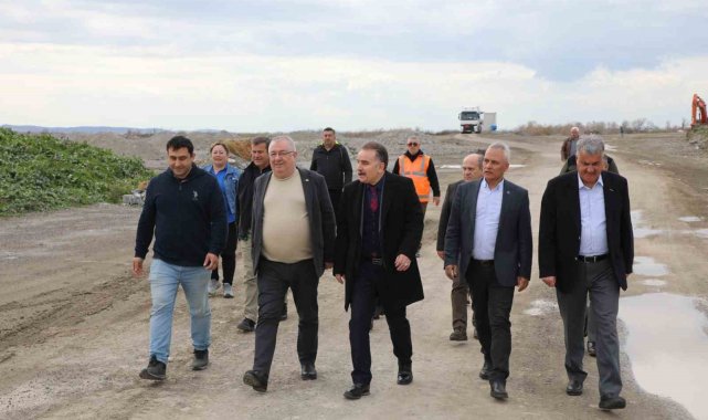 Balıkesir'in Edremit ilçesinde Kaymakam Ahmet Odabaş ve Belediye Başkanı Mehmet Ertaş, yapımı devam eden Edremit Tarıma Dayalı İhtisas Organize Tarım Bölgesi (OTB) alanında incelemelerde bulundu.