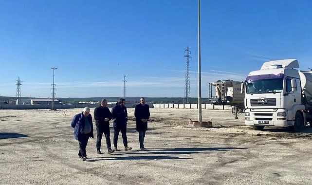 Pınarhisar Kaymakamı Enver Özderin, Belediye Başkan Yardımcısı Bilal Çalık ile birlikte yapımı devam eden tır parkında incelemelerde bulundu.
