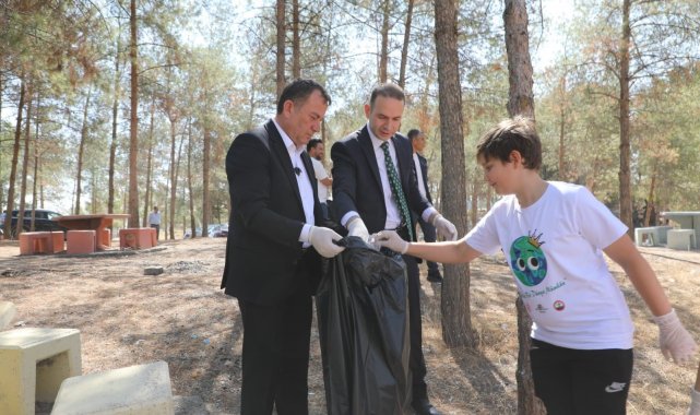 Kaymakam Osman Uğurlu ve Belediye Başkanı Ali Doğan, hem temizlik yaptı hem de çevreye duyarlı bireyler yetişmesi için vatandaşlara çeşitli uyarılarda bulundu.