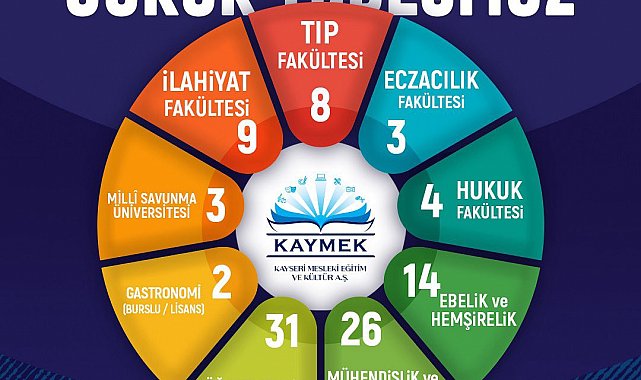 Toplamda 100 lisans ve 150 ön lisans yerleştirmesine imza atan KAYMEK, öğrencilerin ve ailelerin yüzünü güldürürken, ücretsiz, kaliteli ve etkin hizmetleri ile gençleri donanımlı şekilde geleceğe hazırlayarak Kayseri'nin gururu oldu.