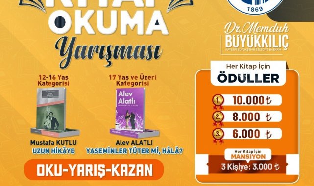 Kayseri Büyükşehir Belediyesi bünyesindeki KAYMEK A.Ş., geleneksel hale getirdiği kitap okuma yarışmasıyla gençleri ve yetişkinleri okuma kültürü etrafında buluşturuyor. İki ayrı kategoride düzenlenecek yarışmada toplamda 66 bin TL'lik ödül dağıtılacak.