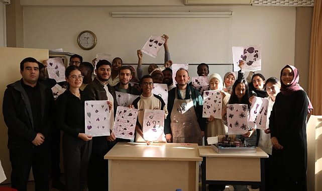 Kayseri Büyükşehir Belediyesi'nin kültür ve mesleki eğitim kuruluşu Kayseri Mesleki Eğitim ve Kültür A.Ş. (KAYMEK), geleneksel el sanatlarının inceliklerini dünyaya tanıtmak amacıyla düzenlediği etkinliklerle farklı milletlerden öğrencileri bir araya getiriyor. KAYMEK eğitmenleri, ebru sanatının köklü geçmişini, kullanılan malzemeleri ve tekniklerini detaylı bir şekilde aktararak öğrencilerin kendi eserlerini oluşturmasına rehberlik etti. Yoğun ilgi gören etkinlikte öğrenciler, ilk kez tanıştıkları ebru sanatını öğrenmenin ve uygulamanın heyecanını yaşadılar. Renklerin suyla dansını keşfeden katılımcılar, Türk kültürüne özgü bu zarif sanata hayran kaldı. Çeşitli ülkelerden gelen kursiyerler, sadece yeni bir sanat dalını deneyimlemekle kalmadı, aynı zamanda Türk kültürüne daha yakından tanıklık etti. Öğrenciler, etkinlik sonunda yaptıkları eserleri hatıra olarak saklayarak bu unutulmaz anı ölümsüzleştirdi.