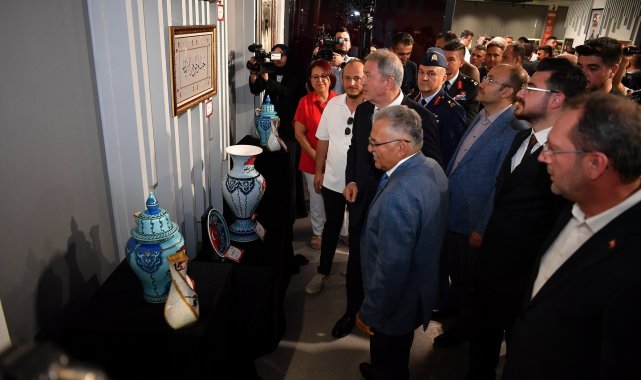 KAYMEK'in 20 farklı branşta hazırladığı 90 eserin yer aldığı sergi, Recep Tayyip Erdoğan Millet Bahçesi Büyük Şehir Sanat Galerisi'nde vatandaşlarla buluştu. Sergi açılışına, Başkan Büyükkılıç'ın yanı sıra TBMM Milli Savunma Komisyonu Başkanı, AK Parti Kayseri Milletvekili Hulusi Akar, Kayseri Valisi Gökmen Çiçek, Garnizon Komutanı Hv.Plt. Tuğgeneral Hasan Volkan Güleryüz, AK Parti Kayseri İl Başkanı Hüseyin Okandan, AK Parti Kayseri Kadın Kolları Başkanı Meral Koşar, AK Parti Kayseri İl Gençlik Kolları Başkanı Hayri Danacı, Erciyes Üniversitesi Rektörü Prof. Dr. Fatih Altun, İl Jandarma Komutanı Tuğgeneral Hakan Dedebağı, İl Emniyet Müdürü Atanur Aydın, vatandaşlar katıldı.
