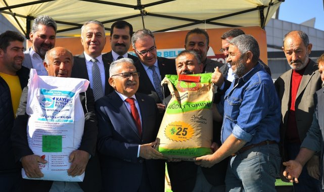 Kayseri Büyükşehir Belediyesi, 2023 yılında 'üretim sizden, destek bizden' projesi kapsamında 16 ilçede üreticilere 412 ton tohum ve 5 bin adet fidan dağıtımı gerçekleştirerek 11 milyon 600 bin TL'lik tohum desteklemeleri yatırımına imza attı.