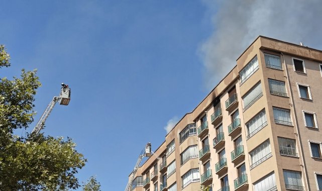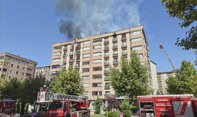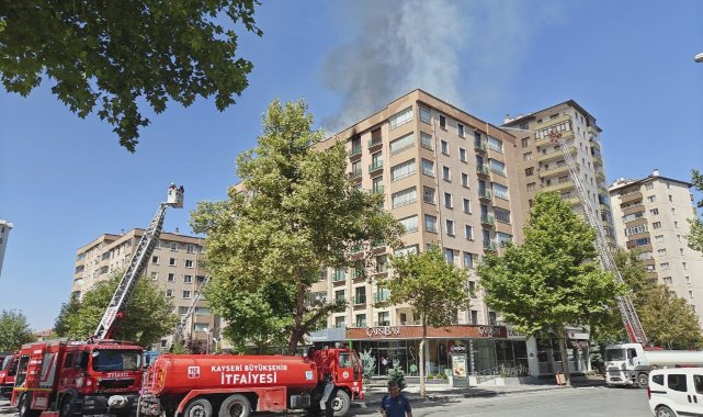 Kayseri'de 10 katlı binadaki çatı yangını söndürüldü
