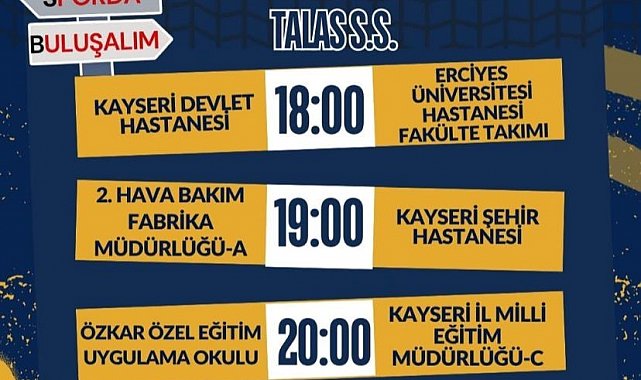 Kamu kurumlarının erkek voleybol takımlarının karşı karşıya geleceği organizasyonda, Kayseri Üniversitesi, Kayseri İl Emniyet Müdürlüğü, Kayseri İl Milli Eğitim Müdürlüğü, Kayseri Devlet Hastanesi, Erciyes Üniversitesi Hastanesi Fakülte Takımı, Şehir Hastanesi, AFAD, 2. Hava Bakım Fabrika Müdürlüğü, Gençlik ve Spor İl Müdürlüğü, Özel Eğitim Uygulama Okulları ve çeşitli ortaokul takımları mücadele edecek. Turnuvada her gün saat 18.00'den itibaren başlayacak karşılaşmalarda kurum takımları kıyasıya rekabet edecek.