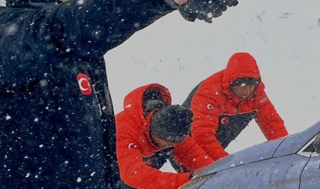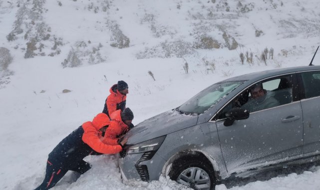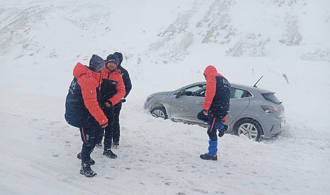 Yolda mahsur kalan araçlar, AFAD İl Müdürlüğü Birlik Müdürlüğü koordinesindeki ekipler tarafından zor şartlar altında kurtarıldı.