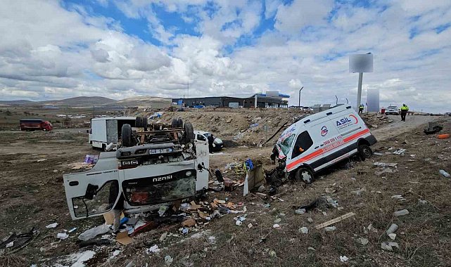 Kayseri'de ambulans ile kamyonetin çarpıştığı kazada 1'i hasta 6 kişi yaralandı.