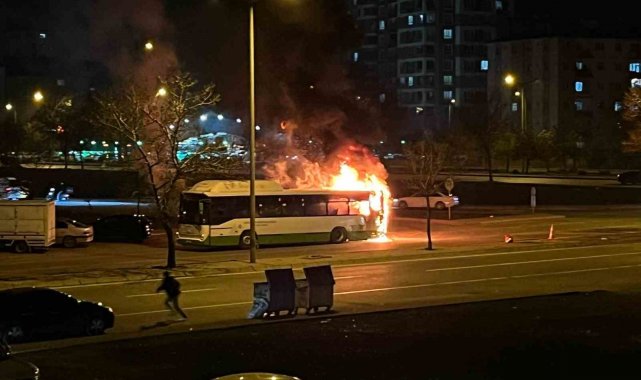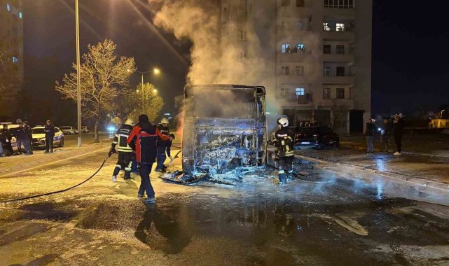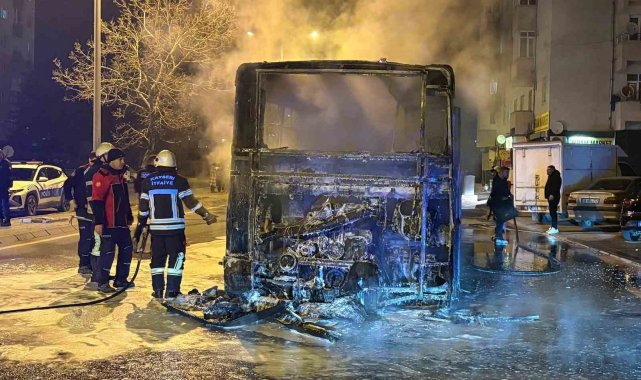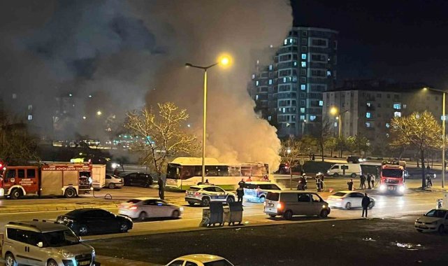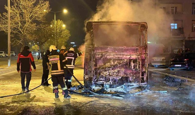 Kayseri'de halk otobüsü alev aldı