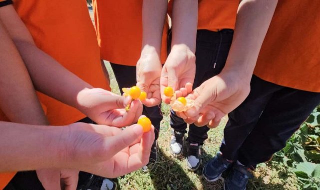 Bir diğer öğrenci Gültanem Taşkın da "Burada altın çileğimiz var. Her okulda yetişmiyor ama bizim okulumuzda yetişiyor" diye konuştu.
