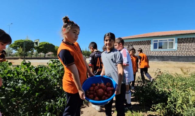 Kayseri'de ilkokul öğrencileri meyve bahçelerinde üretim yapıyor