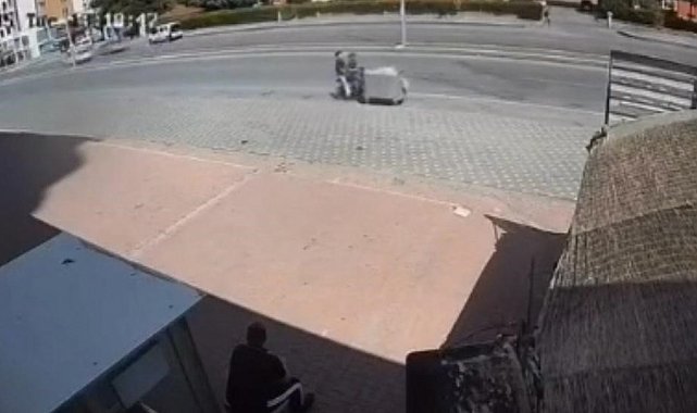 Kayseri'nin Melikgazi ilçesine bağlı Gökkent Mahallesi'nde Kocasinan Caddesi üzerinde elektrikli scooter ile ilerleyen 2 kişi, yol kenarında duran çöp konteynerine yavaş şekilde çarptı. Çarpmanın etkisiyle 2 kişide scooterdan düşerken, kazada yaralanan olmadı. Scooter ile ilerleyen şahısların etrafında hiçbir olmamasına karşın düz şekilde ilerleyerek, konteynera çarpması kazayı görenleri güldürdü. Kaza anı, bir iş yerinin güvenlik kamerasına anbean yansıdı.