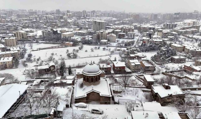 Kayseri'de etkili olan kar yağışı kenti beyaza bürüdü.