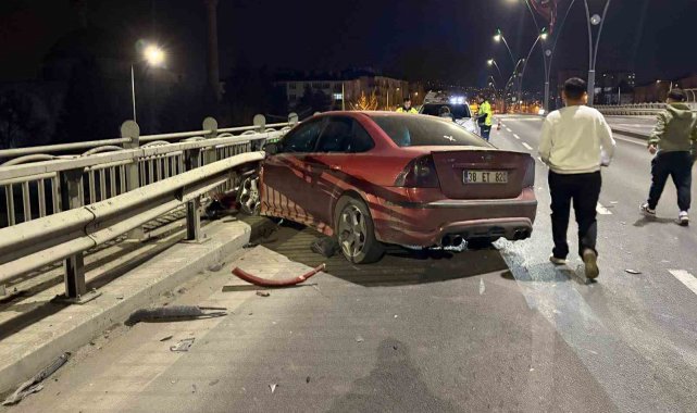 Kayseri'de karşı yola geçen otomobil bariyerlere çarptı