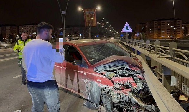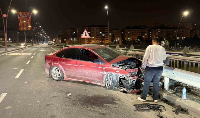 Kayseri'nin Kocasinan ilçesinde kontrolden çıkan otomobil, karşı yola geçerek bariyerlere çarptı. Kazada yaralanan olmazken, tedaviyi reddeden sürücü kaza haberini ailesine görüntülü arayarak verdi.