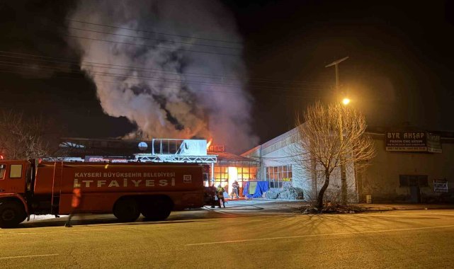 Kayseri'de mobilya atölyesi alevlere teslim oldu