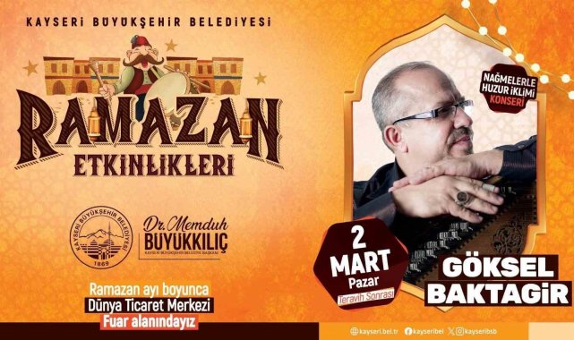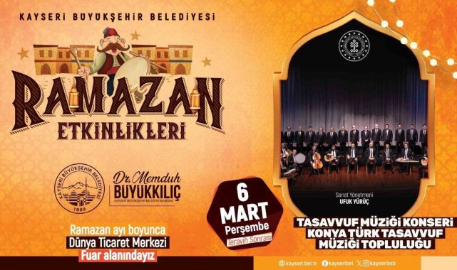 Ramazan etkinlikleri kapsamında ilk gün; birbirinden güzel ilahi ve ezgileri ile sanatçı ve akademisyen Fatih Koca, ikinci gün; sanatçı Göksel Bakagir'in 'Nağmelerle Huzur İklimi' konseri, üçüncü gün; Umut Mürare, dördündü gün; Abdurrahman Uzun, beşinci gün; Prof. Dr. Mahmut Erol Kılıç, altıncı gün; Sanat Yönetmeni Ufuk Yürüç eşliğinde Konya Türk Tasavvuf Müziği Topluluğu'nun Tasavvuf Müziği Konseri, yedinci gün; yine Sanat Yönetmeni Ufuk Yürüç eşliğinde Konya Türk Tasavvuf Müziği Topluluğu'nun Sema Mukâbelesi, sekizinci gün; Murat Belet, dokuzuncu gün; Ankara Bendire Salâ Topluluğu tarafından ezgi ziyafeti, onuncu gün; Tiyatrocu Hüseyin Goncagül tarafından Nasreddin Hoca, Karagöz, Jonglör, Kukla Gösterisi, on birinci gün; Erhan Keklik, on ikinci gün; Sertaç Abi, on üçüncü gün; Alişan Kapaklıkaya, on beşinci gün; Sıtkı Aslanhan, on altıncı gün; Vehbi Vakkasoğlu, on yedinci gün; Namık Kemal Bilgin, on sekizinci gün; İl Müftüsü Durmuş Ayvaz, on dokuzuncu gün; Agâh, yirminci gün; Kayseri Büyükşehir Belediyesi Konservatuvarı Tasavvuf Müziği Korosu Konseri, yirmi birinci gün; Altay Cem Meriç, yirmi ikinci gün; Ayşe Böhürler, yirmi üçüncü gün; Prof. Dr. Mehmet Emin Ay, yirmi dördüncü gün; Ankara Devlet Klasik Türk Müziği Korosu Konser, yirmi beşinci gün; Dilek Cesur, yirmi yedinci gün; Tufan gündüz ve yirmi sekizinci gün; Mehmet Diker sahne alacak.