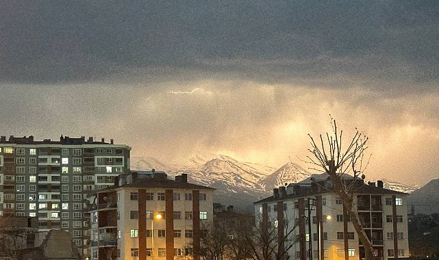 Kayseri'de akşam saatlerinde çakan şimşekler Erciyes'i aydınlattı.