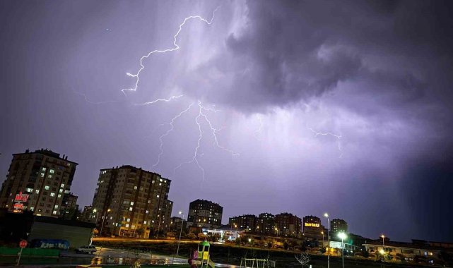 Kayseri'de şimşekler geceyi aydınlattı