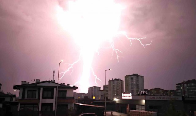 Kayseri'de akşam saatlerinde şimşek etkili oldu. Art arda çakan şimşekler geceyi aydınlatırken, ortaya güzel görüntüler çıktı. O anlar objektiflere yansıdı.