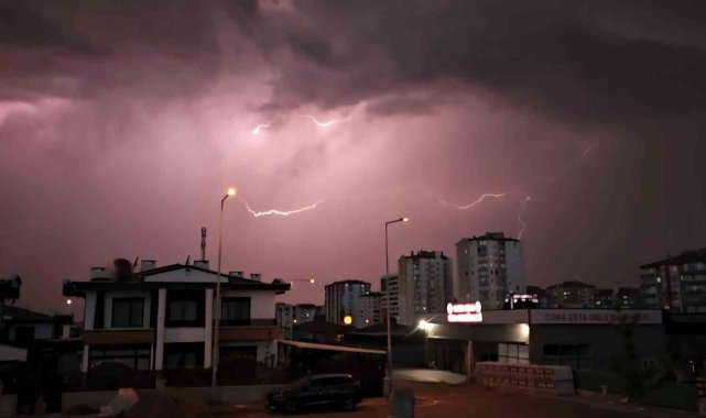 Kayseri'de akşam saatlerinde art arda çakan şimşekler geceyi aydınlattı.