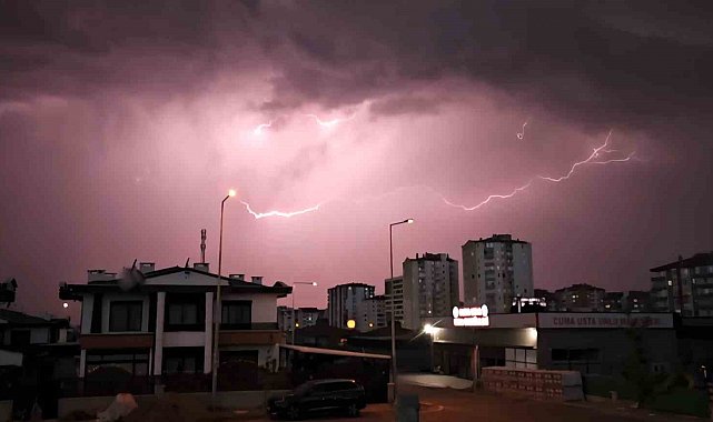 Kayseri'de şimşekler geceyi aydınlattı