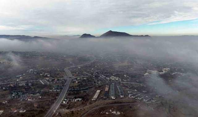 Kayseri'de 2 gün önce sabah saatlerinde etkisini gösteren sis devam ediyor. Kentin birçok noktasında hakim olan sis, havadan görüntülendi. Sis bulutlarının arasında gözüken kent, güzel görüntüler oluşturdu.