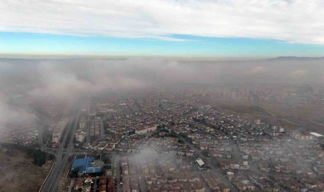 Kayseri'de 2 gündür etkili olan sisli hava şehrin üzerine çöktü.