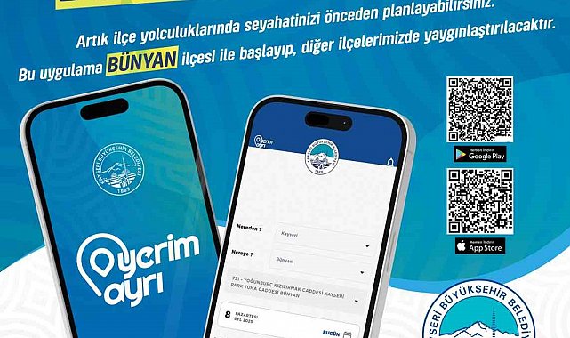 Kayseri Büyükşehir Belediyesi; bir ilke daha imza atarak, vatandaşların ilçe yolculuklarını önceden planlayabilmelerini sağlayacak 'Yerim Ayrı' mobil uygulamasını hizmete sundu. Uygulama ilk olarak Bünyan ilçesinde 13 Ekim Pazartesi günü devreye alınıyor. Uygulamanın önümüzdeki süreçte diğer kırsal ilçelerde de yaygınlaştırılması planlanıyor.