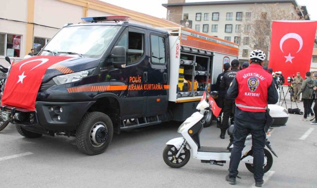 Kayseri İl Emniyet Müdürlüğü hizmetine sunulan araçlar için müdürlük bahçesinde teslim töreni düzenlendi. Saygı duruşunda bulunulması ve İstiklal Marşı'nın okunmasının ardından konuşan Kayseri İl Emniyet Müdürü Atanur Aydın; "Burada bir PAK aracımız var, aynı zamanda 15 arkadaşımızın eğitimleri devam ediyor. AFAD'daki eğitimlerimizi tamamladık, genel müdürlükten gelecek eğitimler devam ediyor. Allah ülkemize bir daha herhangi bir afet göstermesin. Bir önceki afette bu aracın eksikliğini hissetmiştik. Aracımızın içerisinde deprem veya herhangi bir afet olduğunda yeterli tüm malzemeler mevcut. Öncelikle çevik kuvvet, daha sonra diğer birimlerimizdeki arkadaşlarımızın tamamı bu eğitimi alacaklar. Esas uzmanlaşmış, Çevik Kuvvet'in içerisinde kurduğumuz arama kurtarma ekibi olacak. Hayırlı, uğurlu olsun, Allah lazım etmesin. Bunun dışında geldiğimiz günden beri yunusların ve şahinlerin başarılı çalışmalarına şahidiz. Genel müdürlükten ilimize gönderilen 6 tane yunus motosikleti, 4 tane de şahin motosikleti, aynı zamanda ilimizde daha önce kullanılmış ama çeşitli arızalarından dolayı uzun süredir depoda beklemekte olan 10 tane elektrikli bisikletimiz var. Elektrikli bisikletimiz millet bahçesinde, park ve bahçelerde görev alacak arkadaşlarımızın kullanımına sunduk. Bunların sayısını yaz dönemine kadar 25'e çıkartacağız, şehrimizdeki tüm park ve bahçelerde görev alacak" ifadelerini kullandı.
