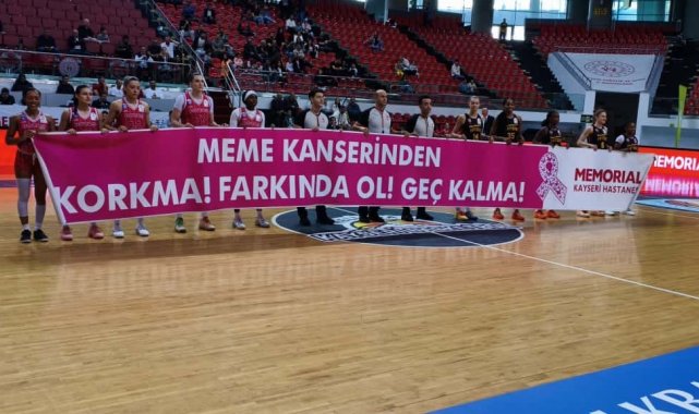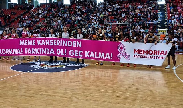 Melikgazi Kayseri Basketbol, ligin 2. haftasında sahasında Botaş'ı ağırlıyor. Kadir Has Spor Salonu'nda oynanan maç öncesinde parkeye çıkan oyuncular, 1-31 Ekim Meme Kanseri Farkındalık Ayı dolayısıyla pankart açtı. Memorial Kayseri Hastanesi sponsorluğunda açılan pankartta, 'meme kanserinden korkma, farkında ol, geç kalma' yazılı pankart açılarak meme kanserine farkındalık oluşturuldu.
