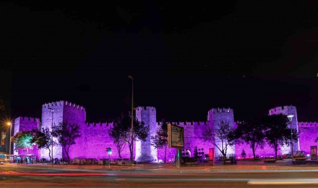 Kayseri Kalesi, kanserle mücadele için mor renge büründü