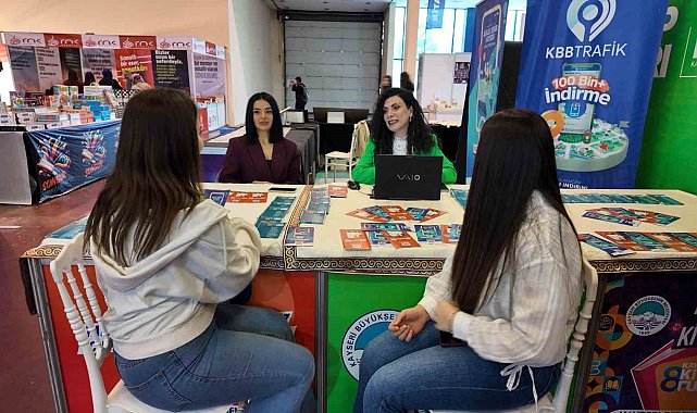 8'inci Kayseri Kitap Fuarı'nda çocukların kitap heyecanı yüzlere yansırken, Kayseri Büyükşehir Belediyesi bünyesindeki Alo 153 İletişim Merkezi ve Beyaz Masa ekipleri de vatandaşlarla birebir iletişim kuruyor.