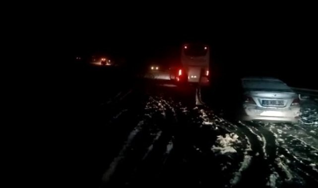 Kayseri-Malatya karayolu üzerinde etkili olan şiddetli kar yağışı ve tipi nedeniyle ulaşım sağlanamazken birçok araç yolda mahsur kaldı.