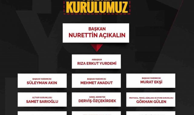 Süleyman Akın başkan yardımcısı, Mehmet Anadut başkan yardımcısı, Murat Ekşi başkan yardımcısı, Samet Sarıoğlu altyapı sorumlusu, Derviş Özçekirdek genel sekreter, Gökhan Gülen protokol, temsil ve ağırlama sorumlusu, Ayhan Gültekin sağlık işleri sorumlusu, Mehmet Saçmacı reklam ve pazarlama sorumlusu, Ali Fidan hukuk işleri sorumlusu, Muzaffer Polat yurt dışı sorumlusu.