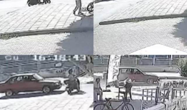 Kaza anları ile güvenilk kamerasına saniye saniye yansıdı. Görüntülerde motosiklet sürücüsünün yol içinde dönüş yapmak istediği sırad gelen otomobilin çarpma anları yer aldı.