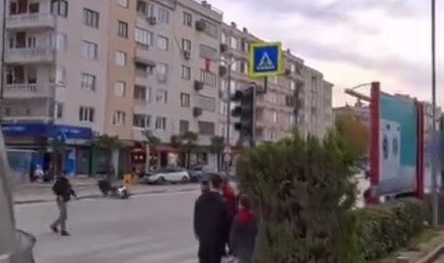 Kaza, Bursa'nın İnegöl ilçesi Osmaniye Mahallesi Ahmet Akyollu caddesinde meydana geldi. Cadde üzerinde seyir halinde sürücü Koray A. (25) yönetimindeki 16 KJD 66 plakalı motosiklet, sürücüsünün kontrolünden çıkarak devrildi. Devrilen motosiklet yaklaşık 15 metre sürüklendi. Motosikletten düşen sürücü yaralandı. Yaşanan korku dolu anlar, başka bir motosikletlinin kask kamerasına yansıdı.