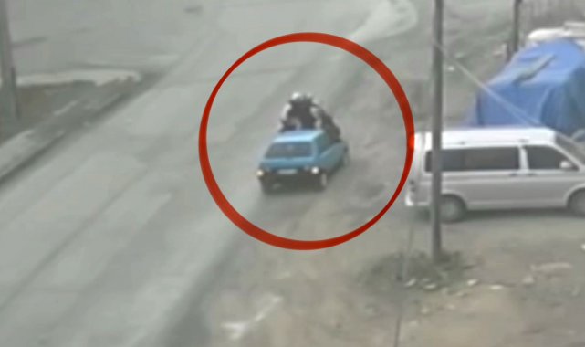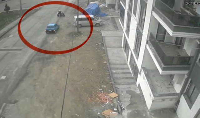 Kaza atlatan otomobil geri dönüp motosiklete çarptı: O anlar kamerada