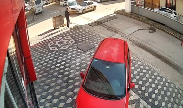 Kaza anı güvenlik kamerasına saniye saniye yansıdı. Görüntülerde kaldırımda telefonla konuşarak yürüyen yayanın, yol ayrımına geldiği sırada çarpışan araçların altında kalmaktan saniyelerle kurtulduğu anlar yer aldı. Kazayla ilgili inceleme başlatıldı.