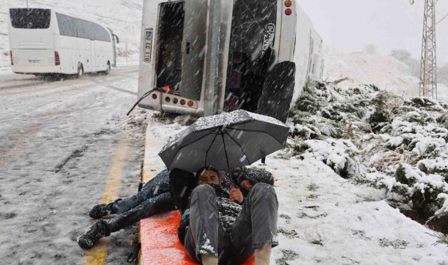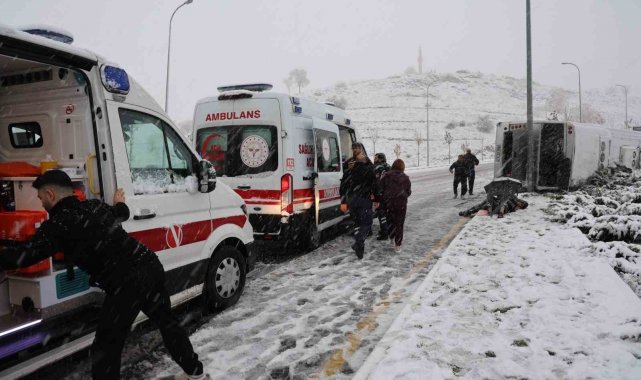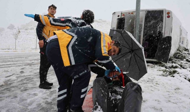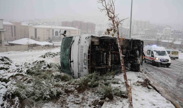 Edinilen bilgiye göre, Mehmet Akif Ersoy Mahallesi Kayaşehir yolu mevkide meydana gelen kazada, rampa aşağı inen A.A. idaresindeki 50 EC 110 plakalı işçi servisi buzlanma nedeni ile kayganlaşan yolda sürücüsünün direksiyon hakimiyetini kaybetmesi sonucu takla attı. Refüje çarparak duran işçi servis aracında bulunan 14 kişi yaralanırken, haber verilmesi üzerine olay yerine sağlık, polis, itfaiye ve AFAD ekipleri sevk edildi.
