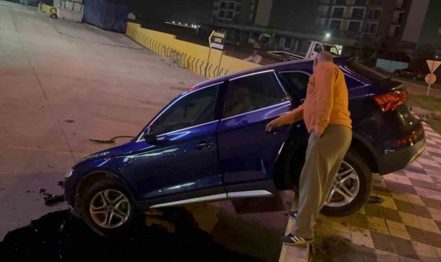 Savrulan araç daha sonra hipermarketin bahçe duvarında asılı kaldı. İhbar üzerine olay yerine polis ekipleri sevk edildi. Trafik polisi tarafından yapılan kontrollerde sürücü H.İ.'nin alkollü olduğu tespit edildi.