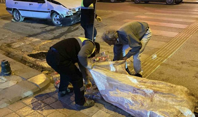 Kaza sonucunda otomobil kullanılamaz hale gelirken, lüks araçta maddi hasar oluştu. Geri dönüşüm aracının içerisindeki atık malzemeler ise yola savruldu. Polis ve belediye ekipleri, çevrede temizlik çalışması yaptı. Hasarlı otomobil ise, çekici yardımıyla bulunduğu yerden kaldırıldı.
