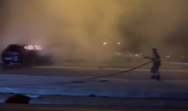 Didim-Söke karayolu Denizköy kavşağında trafik kazasına karışan araç yandı.