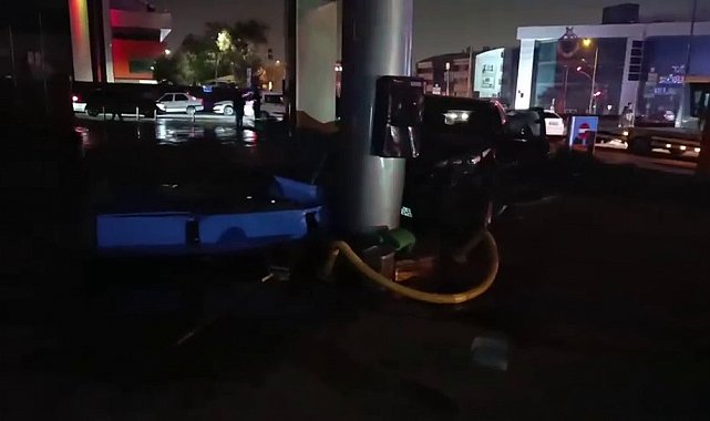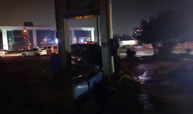 Kocaeli'nin Körfez ilçesinde kavşakta çarpışan araçlardan biri benzin istasyonuna daldı. Kaza anı güvenlik kamerası tarafından kaydedildi.