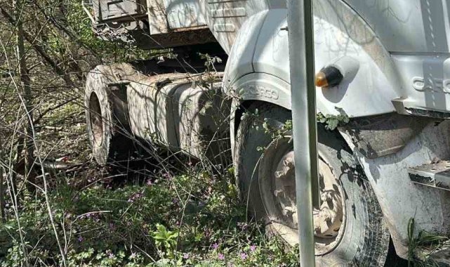Kaza yapan kamyon sürücüsünün imdadına muhtar yetişti