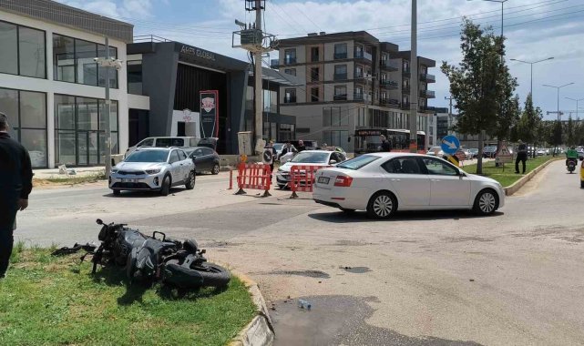 Kaza yapan motosikletli karşı yönden gelen minibüsün altında kaldı