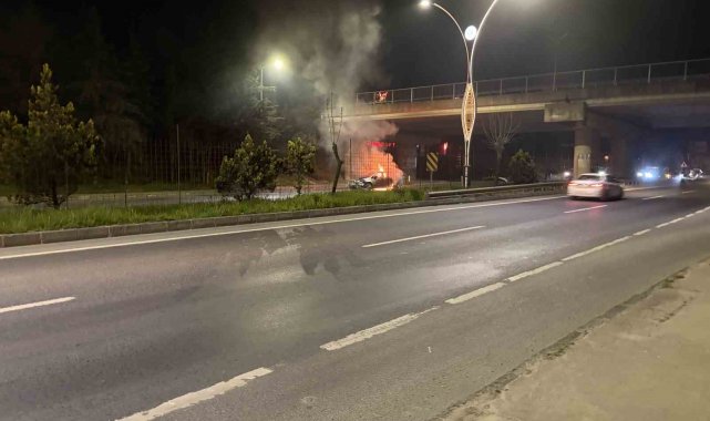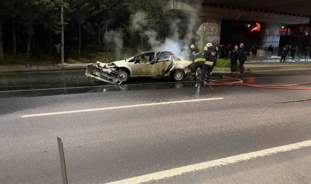 Kaza yapan otomobil alev topuna döndü: Yol trafiğe kapandı