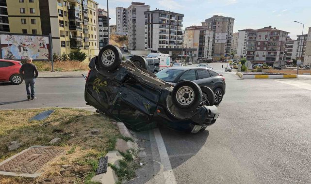 Kaza yapan otomobil takla attı: Şans eseri yaralanan olmadı